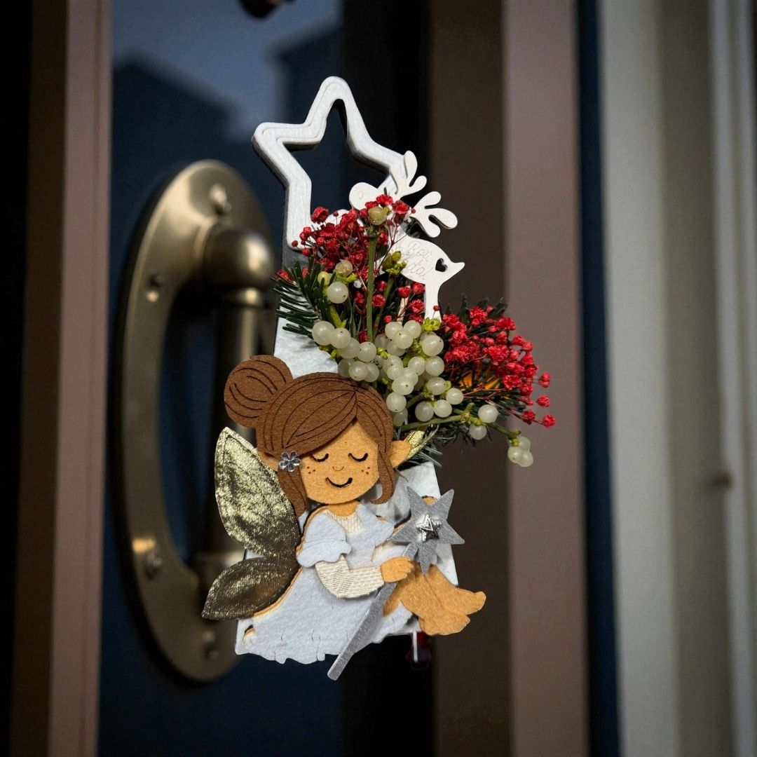 Este Muérdago de la Suerte llega acompañado de un adorable hada que simboliza protección, luz y buenos deseos. Sus frutos blancos, combinados con las ramitas rojas y el toque verde navideño, crean un amuleto perfecto para atraer fortuna, armonía y energía positiva al hogar.