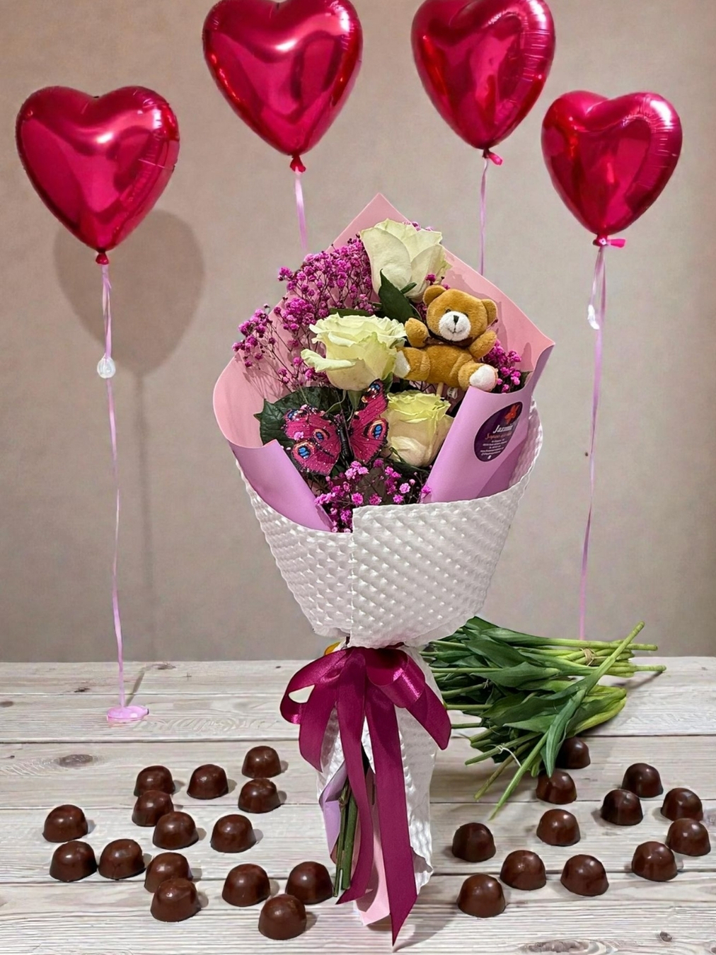 Este ramo combina rosas rojas y rosas blancas, símbolo de la pasión y la pureza, creando una composición elegante y profundamente romántica. Acompañado de verdes naturales y detalles florales suaves, es el regalo perfecto para decir te quiero sin palabras.