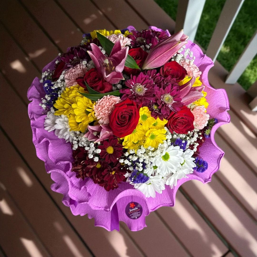 ✨ Creación exclusiva de Floristería Jazmín Parets, elaborada a mano con flores frescas y una mezcla de tonalidades que enamoran.